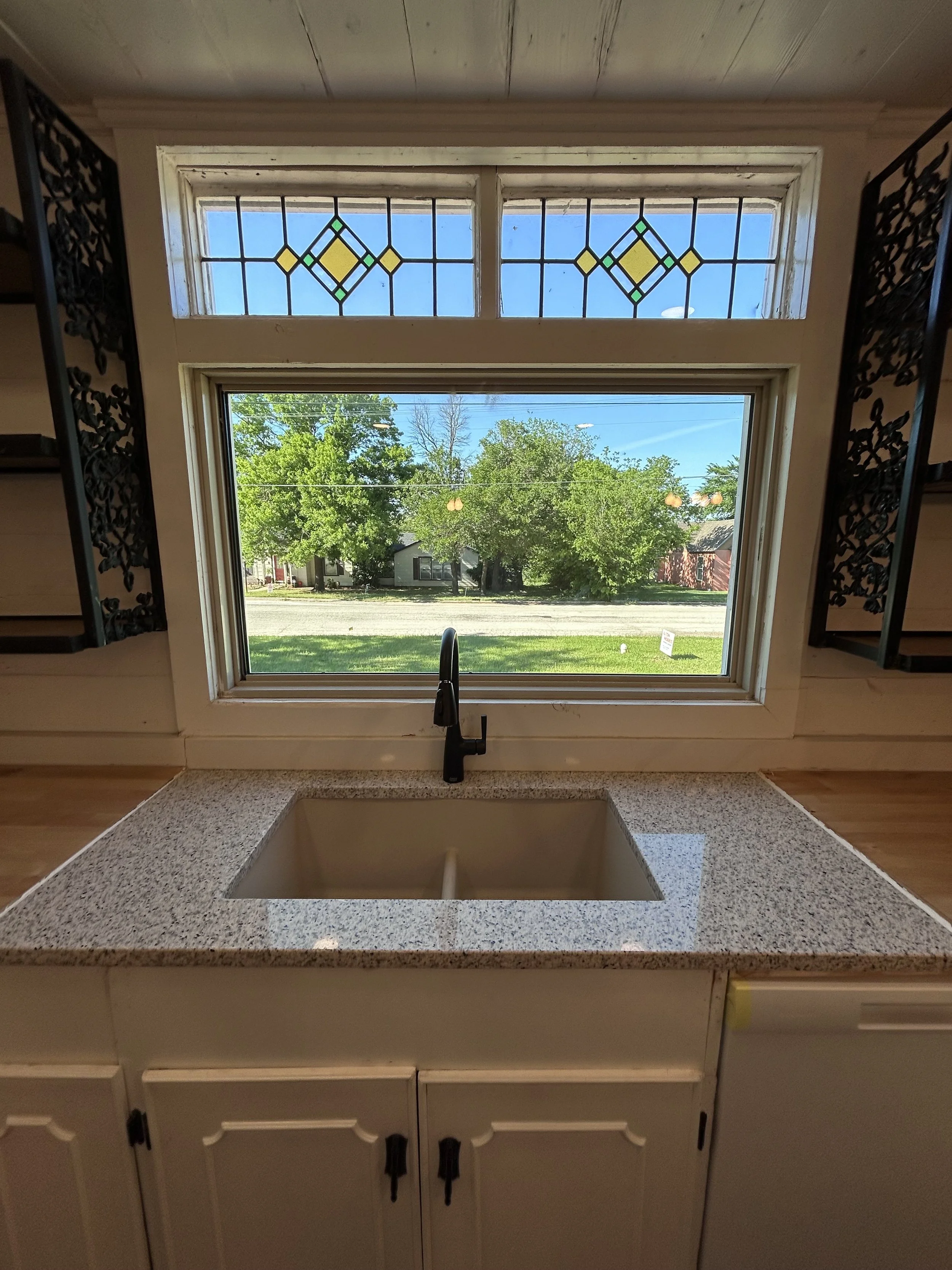A kitchen picture window offers a stunning, unobstructed view of the front yard, allowing natural light to flood the space while creating a seamless connection to the outdoors. This design feature not only enhances the kitchen’s ambiance but also provides a peaceful and inviting backdrop, perfect for morning coffee or entertaining guests. The expansive window frames lush greenery and landscaping, bringing a touch of nature inside and making the kitchen feel more open and airy.